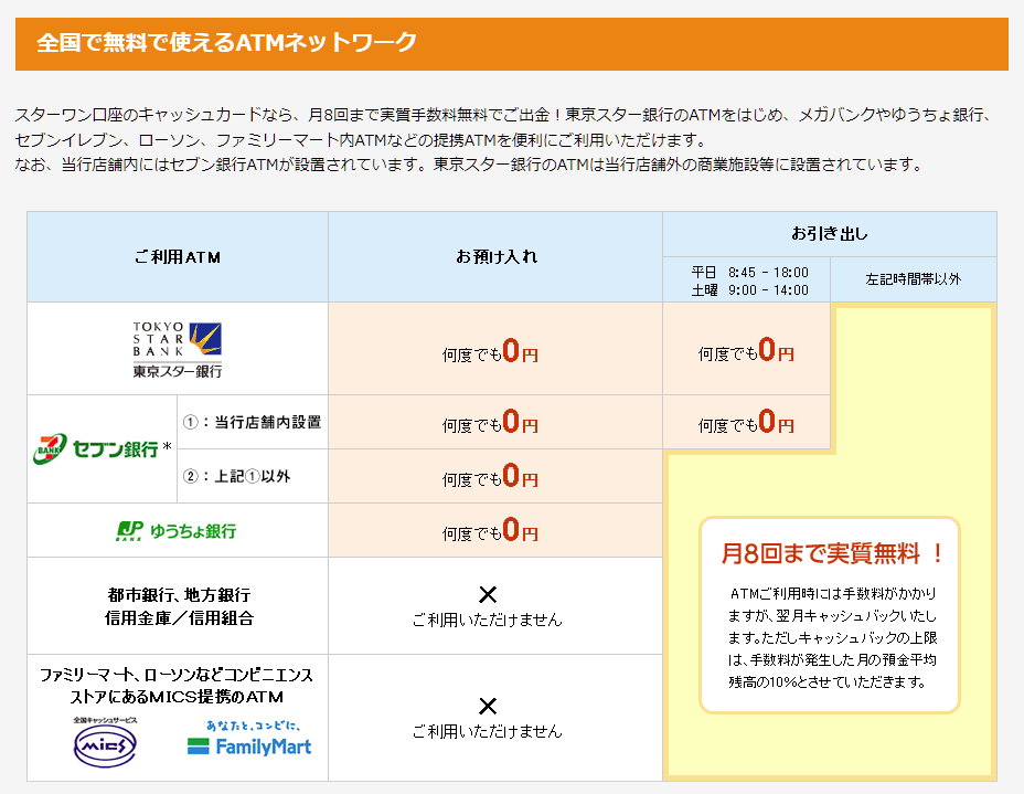 平日、土日関係なく夜の9時までATM手数料0というのは非常にありがたいです。