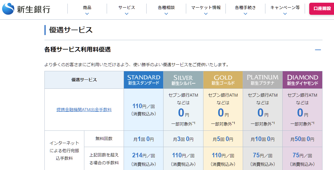 ただし、新生銀行は利用しているサービスによってランク分けされていて、